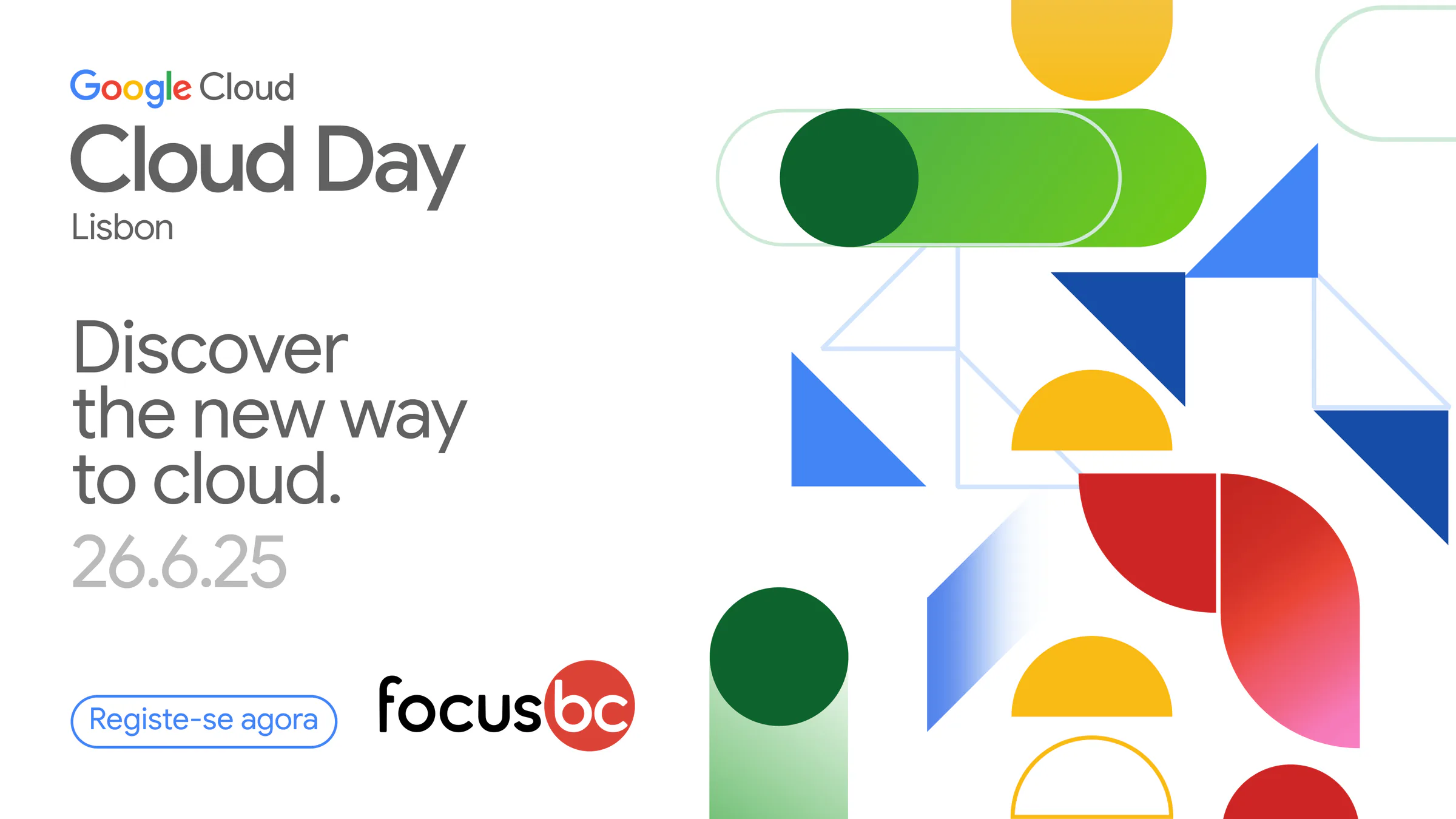 Promotional banner for Google Cloud Day Lisbon featuring the Google Cloud logo and the headline “Discover the new way to cloud.” The date 26.6.25 is displayed …