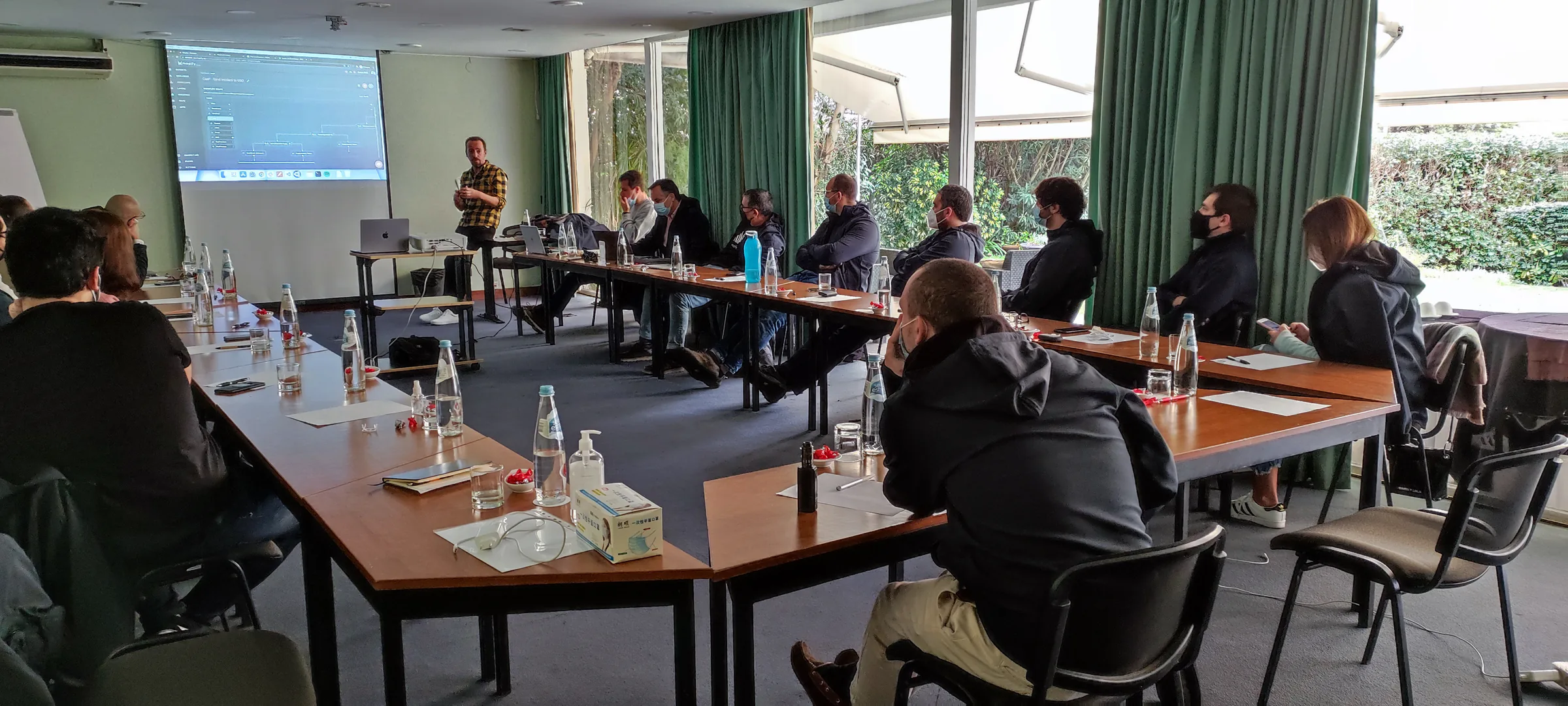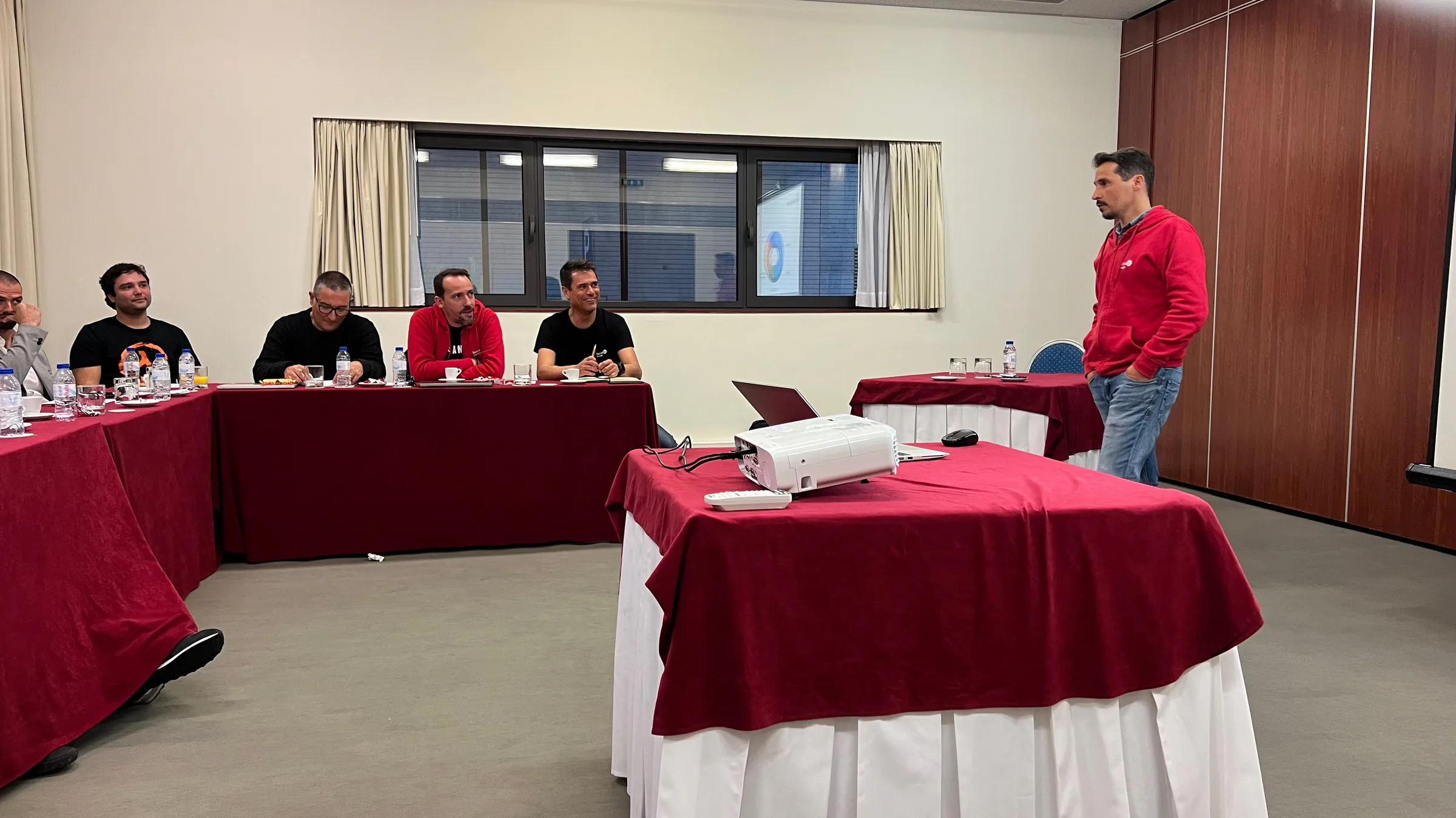 Mario Sobral delivers a live demonstration to Junitec members during a Mapify workshop, pointing at a digital map interface displayed on a large screen. Partic…