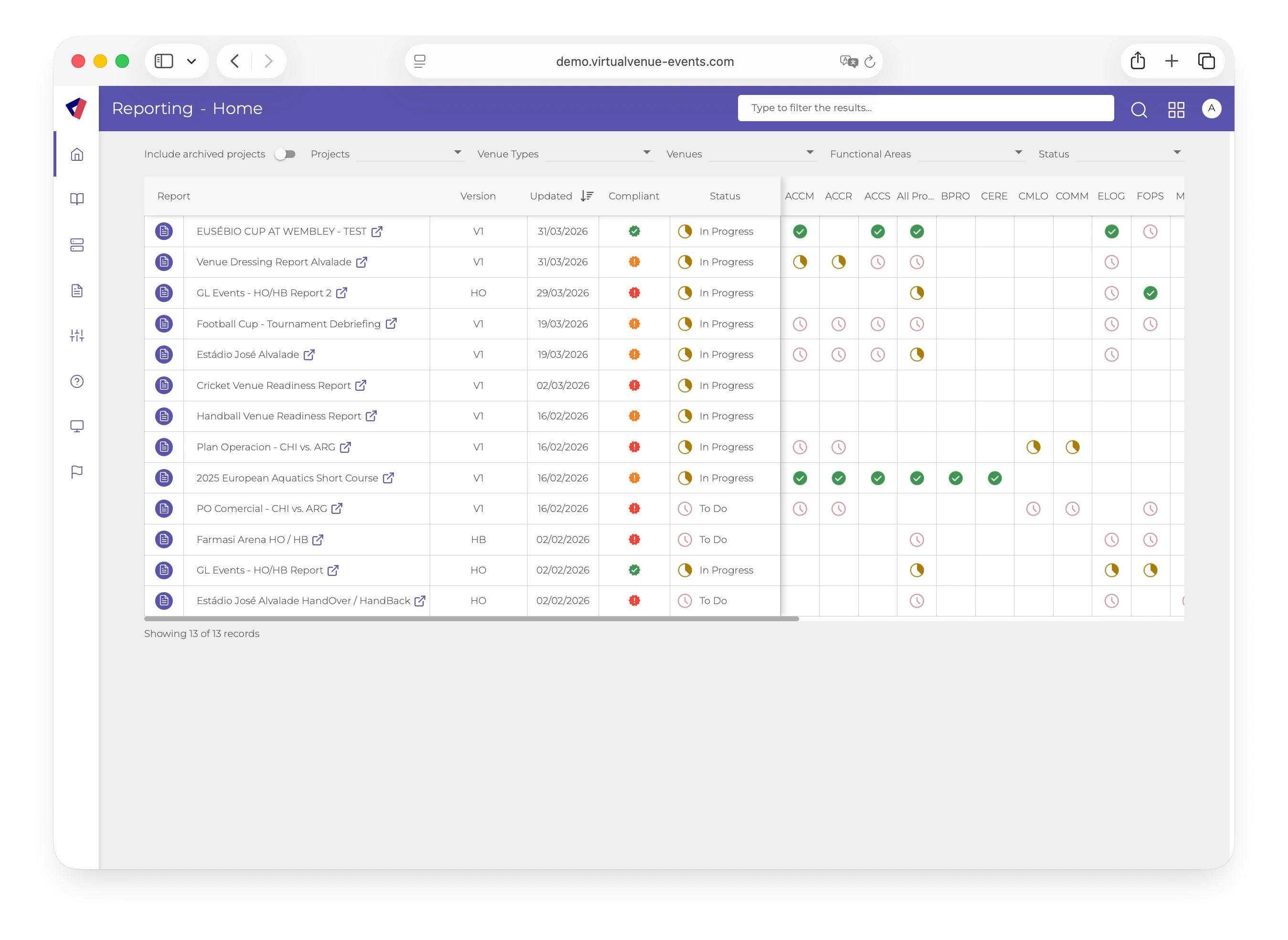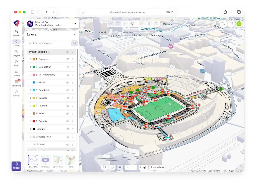 Virtual Venue gives organisers one operational layer across venues, teams, and timelines.